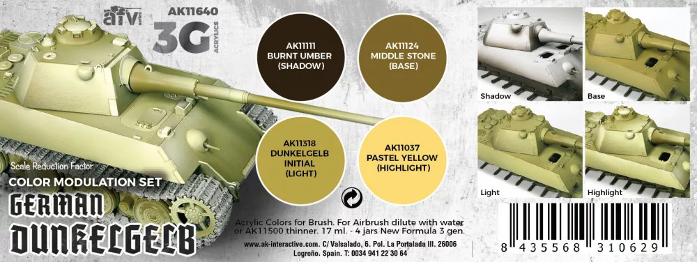 A special set of 3rd Generation acrylic paints intended for finishing vehicles painted in the famous German Dunkelgelb (Dark Yellow) using the modulation technique.