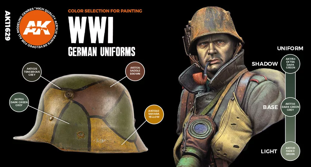 In this set, you will find the base color, shadow and light to paint the characteristic Field Grey uniform used by these troops.