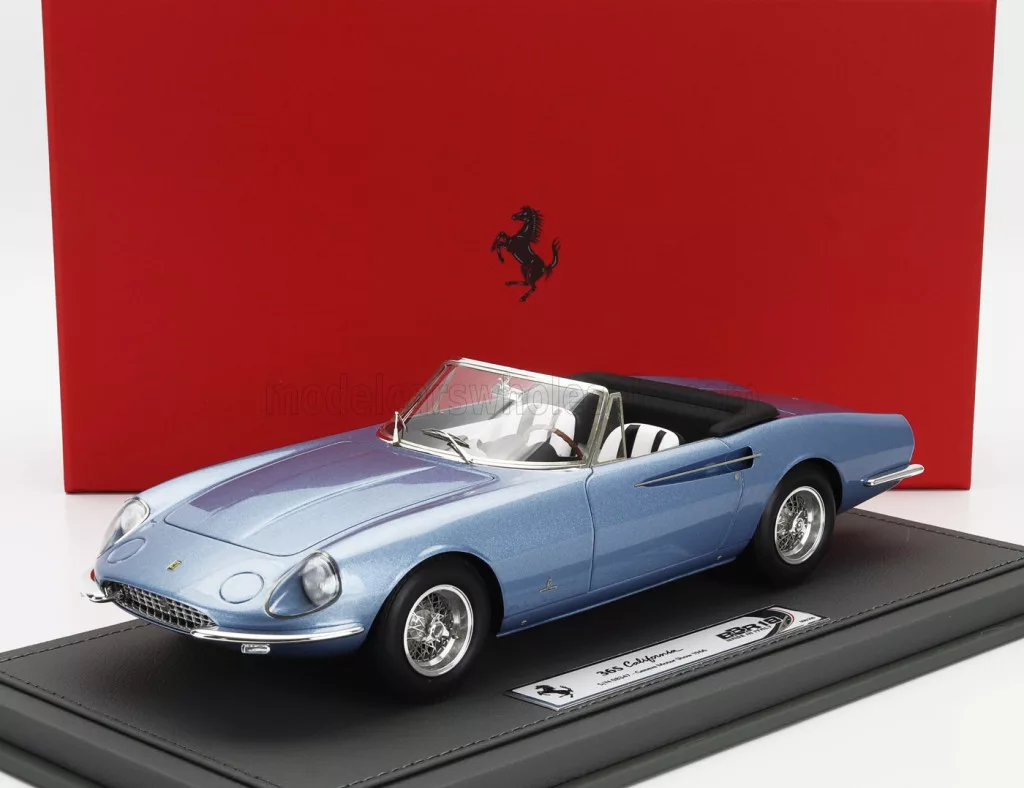 Bbr-Models - FERRARI 365 CALIFORNIA s/n08347 SPIDER CABRIOLET GENEVE MOTORSHOW 1966- CON VETRINA - WITH SHOWCASE LIGHT BLUE MET