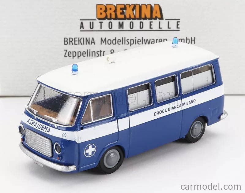 Brekina Plast - Fiat 238 Minibus Ambulanza Croce Bianca Milano 1966 Blue White