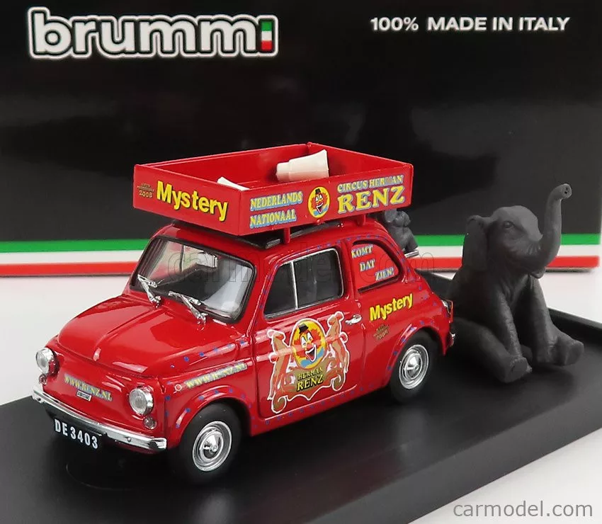 Brumm - Fiat 500R Veicolo Pubblicitario 1972 - Circo Circus Herman Renz Olanda With Two Elefants Figures - Mystery 2008 Red