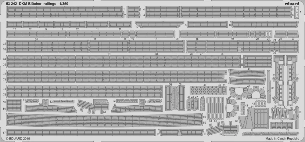 Eduard - DKM Blücher railings for TrumpeterThis is a Plastic Model Kit from Eduard. Does not includes glue and paint which is necessary to build this kit.