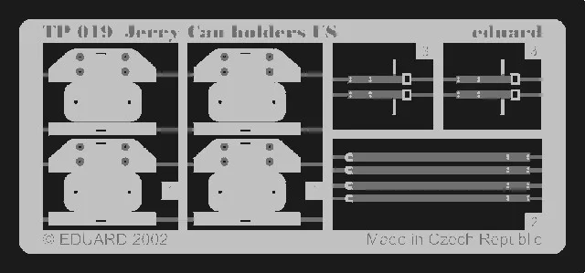 Eduard - Jerry Can holders USThis is a Plastic Model Kit from Eduard. Does not includes glue and paint which is necessary to build this kit.