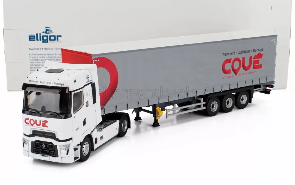 Eligor - RENAULT T-HIGH TRUCK TELONATO COUE TRANSPORTS 2023 WHITE GREY