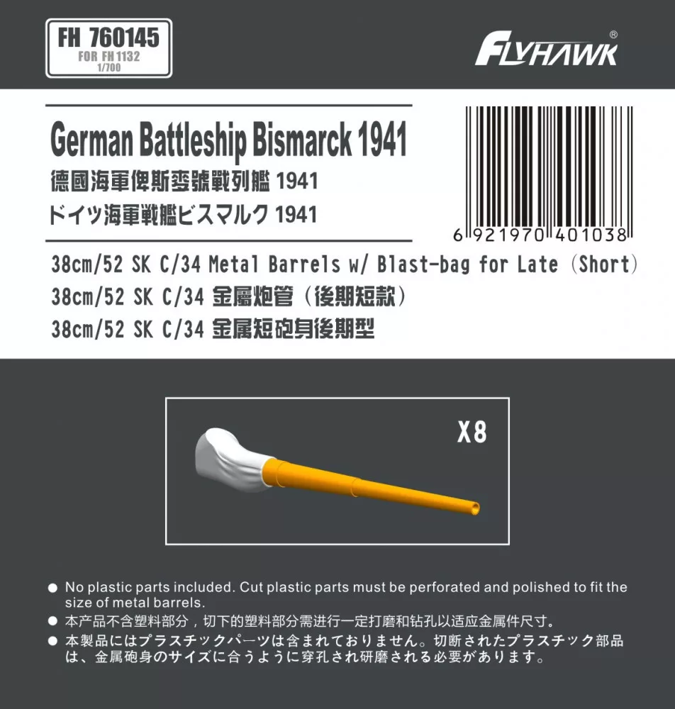 Flyhawk - German Battleship Bismark 1941 38cm 52SK C34 Metal Barrel Short