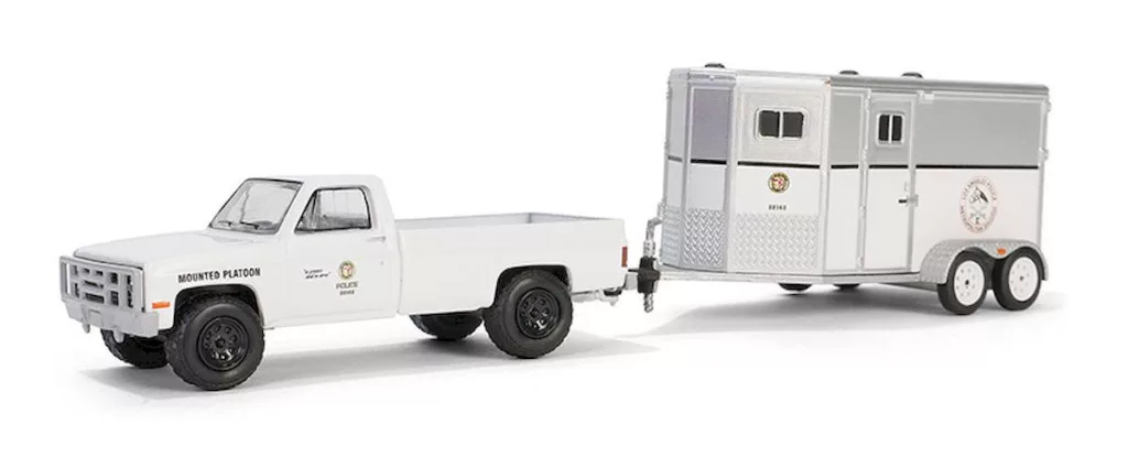 Greenlight - 1:64 1987 Chevrolet C20 - LAPD Search & Rescue Mounted Platoon with Horse Trailer Solid Pack - Hitch & Tow Series 31 - GreenLight