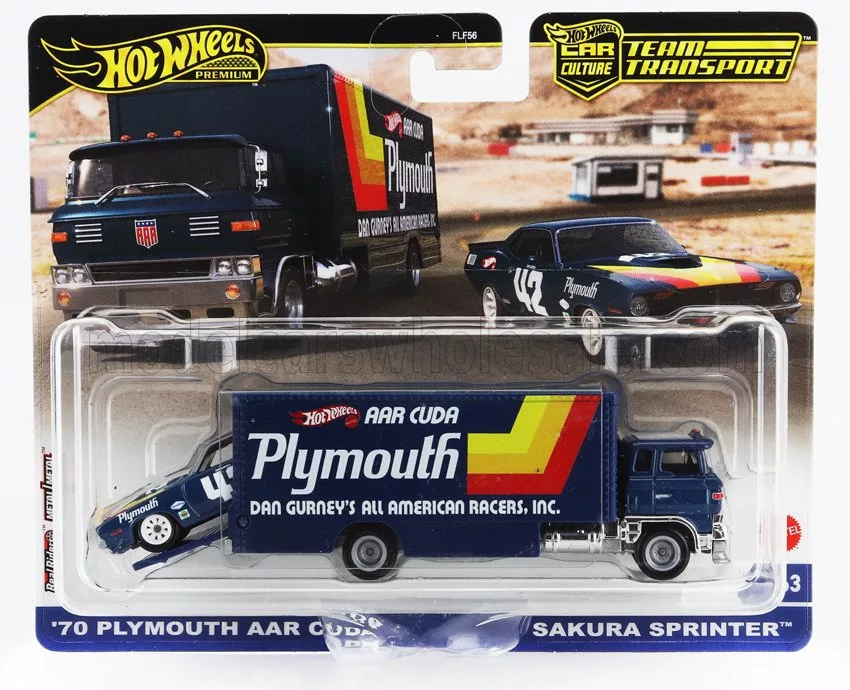 Mattel Hot Wheels - TRUCK SAKURA SPRINTER CAR TRANSPORTER WITH PLYMOUTH CUDA N 42 RACING 1970 BLUE