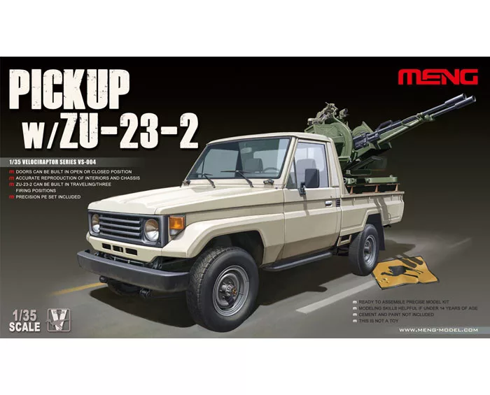 Meng Model - Pickup Zu-23-2This is a Plastic Model Kit from Meng Model. Does not includes glue and paint which is necessary to build this kit.