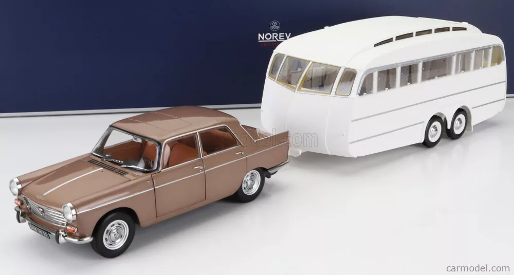 Norev - Peugeot 404 With Caravan Roulotte Henon 1965 Brown Met