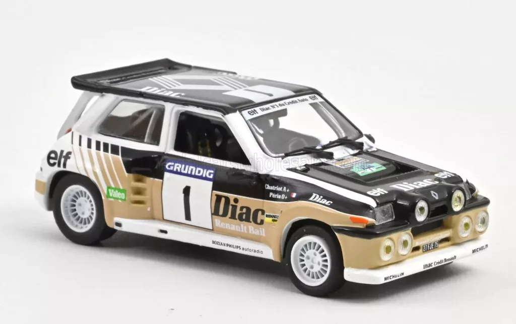 Norev - RENAULT R5 MAXI TURBO TEAM DIAC N 1 WINNER RALLY DU VAR 1986 FRANCOIS CHATRIOT - MICHEL PERIN BLACK BEIGE WHITE