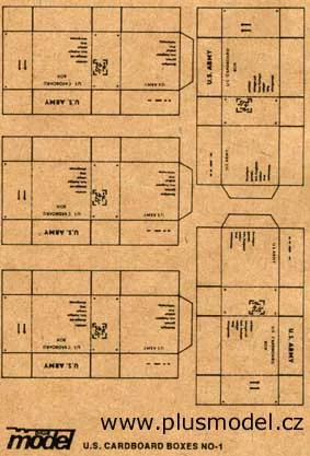 Plus Model - U.S. Transport Kartons WW II, 5 Stück pro Bogen.This is a Plastic Model Kit from Plus model. Does not includes glue and paint which is necessary to build this kit.
