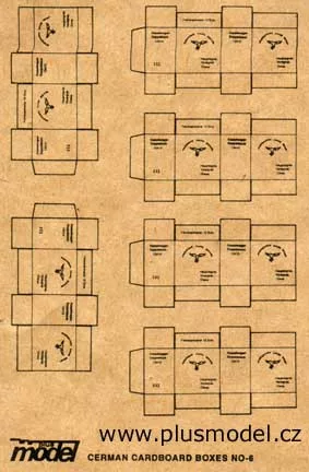 Plus model - Deutsche Transport Kartons WW IIThis is a Plastic Model Kit from Plus model. Does not includes glue and paint which is necessary to build this kit.