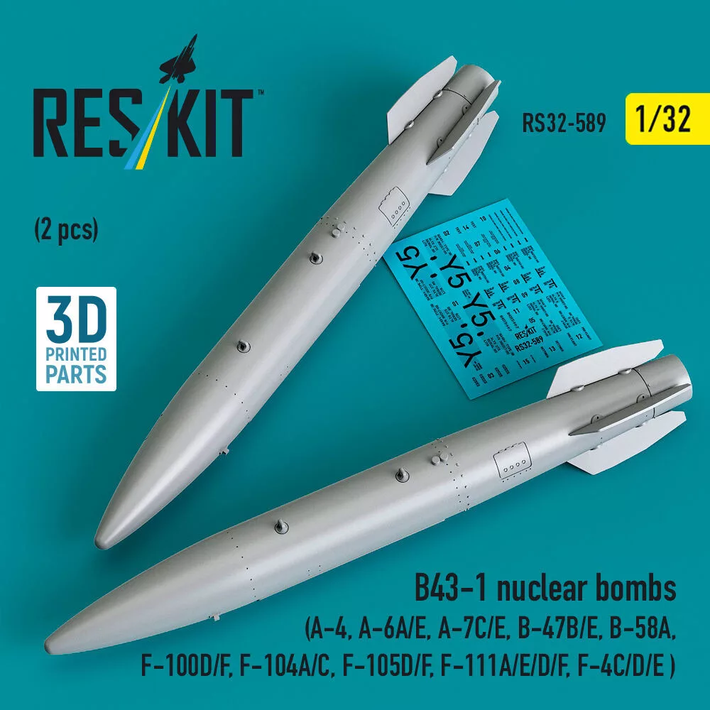 Reskit - B43-1 nuclear bombs (2 pcs) (A-4, A-6A/E, A-7C/E, B-47B/E, B-58A, F-100D/F, F-104A/C, F-105D/F, F-111A/D/E/F, F-4C/D/E ) (3D Printed)