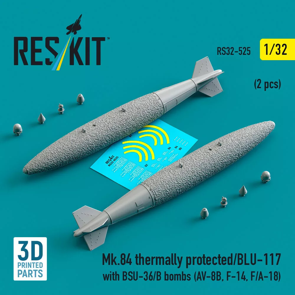 Reskit - Mk.84 thermally protected/BLU-117 with BSU-36/B bombs (2 pcs) (AV-8B, F-14, F/A-18) (3D Printed)