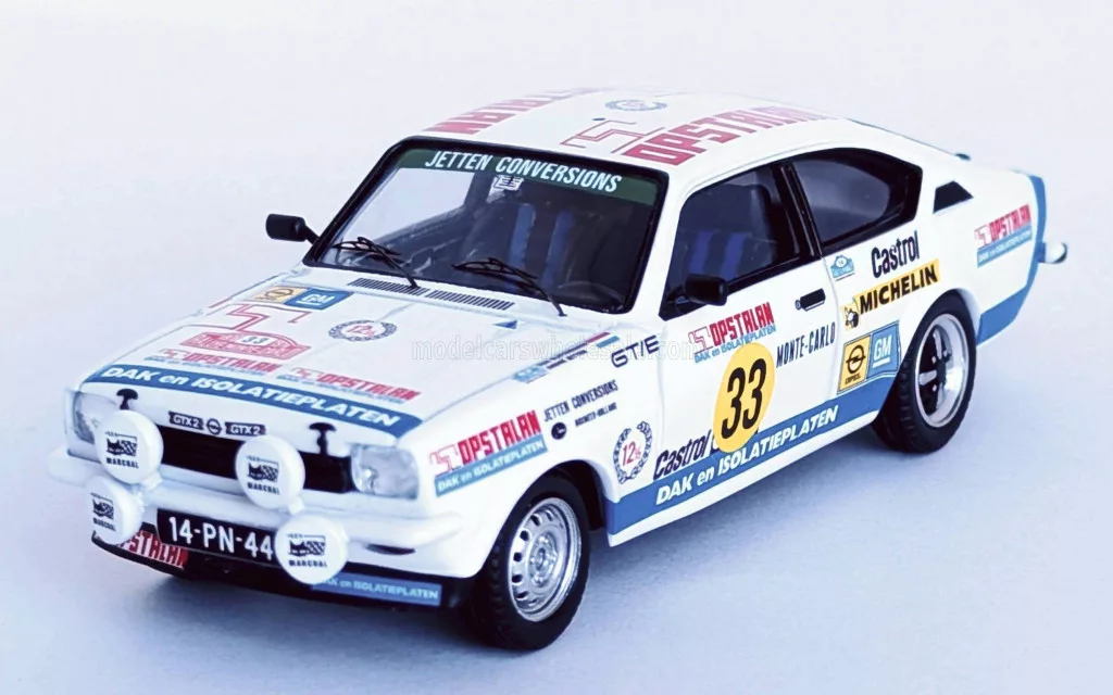 Trofeu - OPEL KADETT GT/E (night version) N 33 RALLY MONTECARLO 1978 ROB SLOTEMAKER - ANDRE JETTEN WHITE LIGHT BLUE