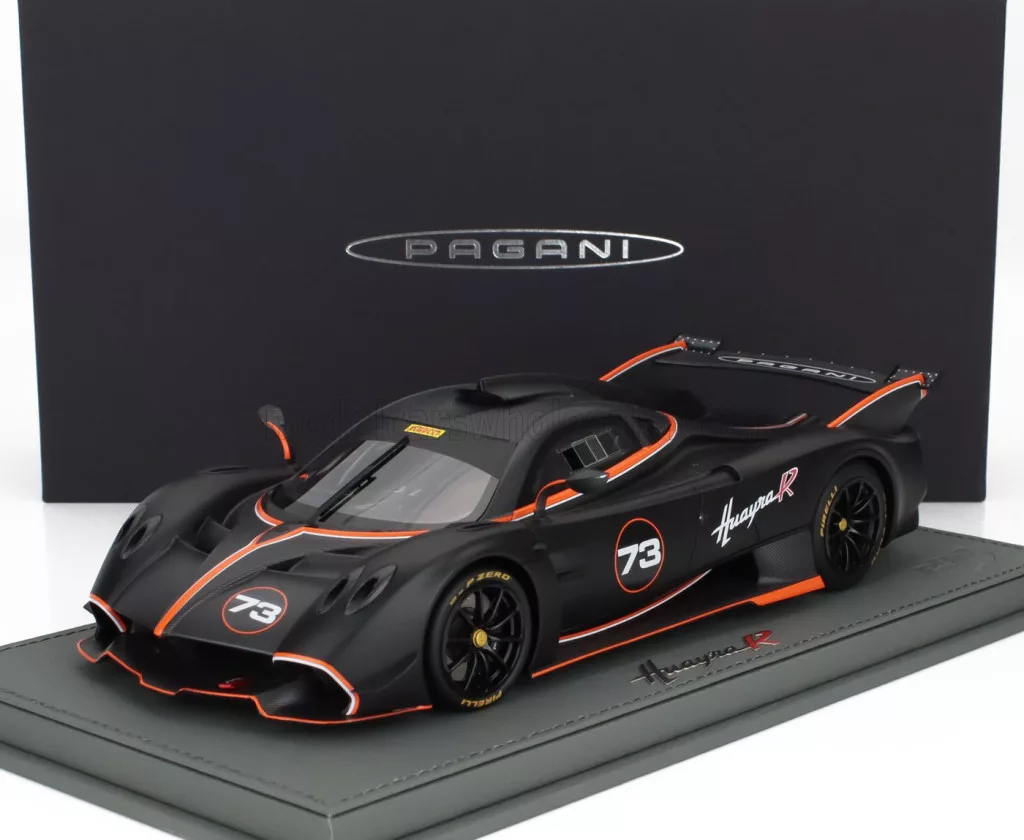 Bbr-Models - PAGANI HUAYRA R N 73 RACING 2021 - CON VETRINA - WITH SHOWCASE MATT BLACK CARBON