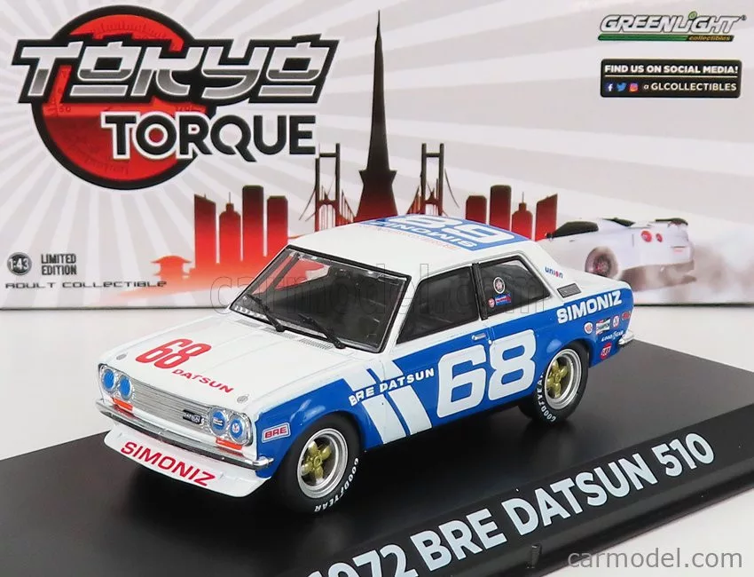 Greenlight - Datsun 510 Bre N 68 Racing 1972 P.Gregg White Blue