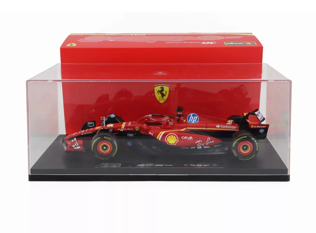 Burago - FERRARI F1 SF-24 TEAM SCUDERIA FERRARI N 16 4th EMILIA ROMAGNA IMOLA GP 2024 CHARLES LECLERC - CON VETRINA - WITH SHOWCASE RED BLACK