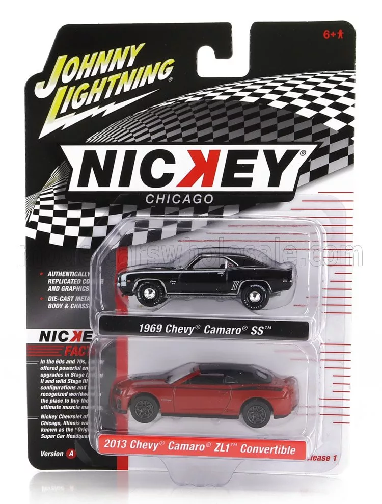 Johnny Lightning - CHEVROLET SET 2X CAMARO SS 1969 + ZL1 CABRIOLET CLOSED 2013 BLACK RED