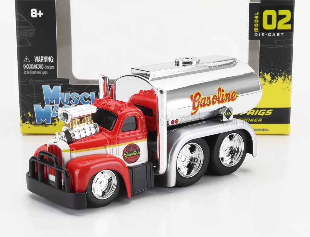 Maisto - MACK B-61 TANKER TRUCK GASOLINE 3-ASSI CUSTOM 1953 RED SILVER